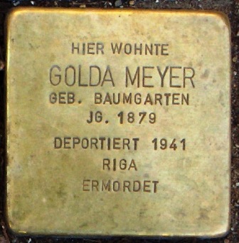Golda Meyer, geb. Baumgarten, geb. am 14.2.18979 in Halberstadt, deportiert am 6.12.1941 nach Riga