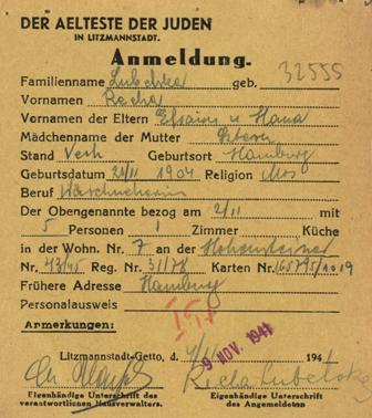 In the register of residents of the ghetto, the data for 2 Nov. 1941 contains the entry: Recha and Ruth Olga Lubelsky moved into a room at Hohensteiner Strasse 43, apartment no. 7, together with five persons overall.